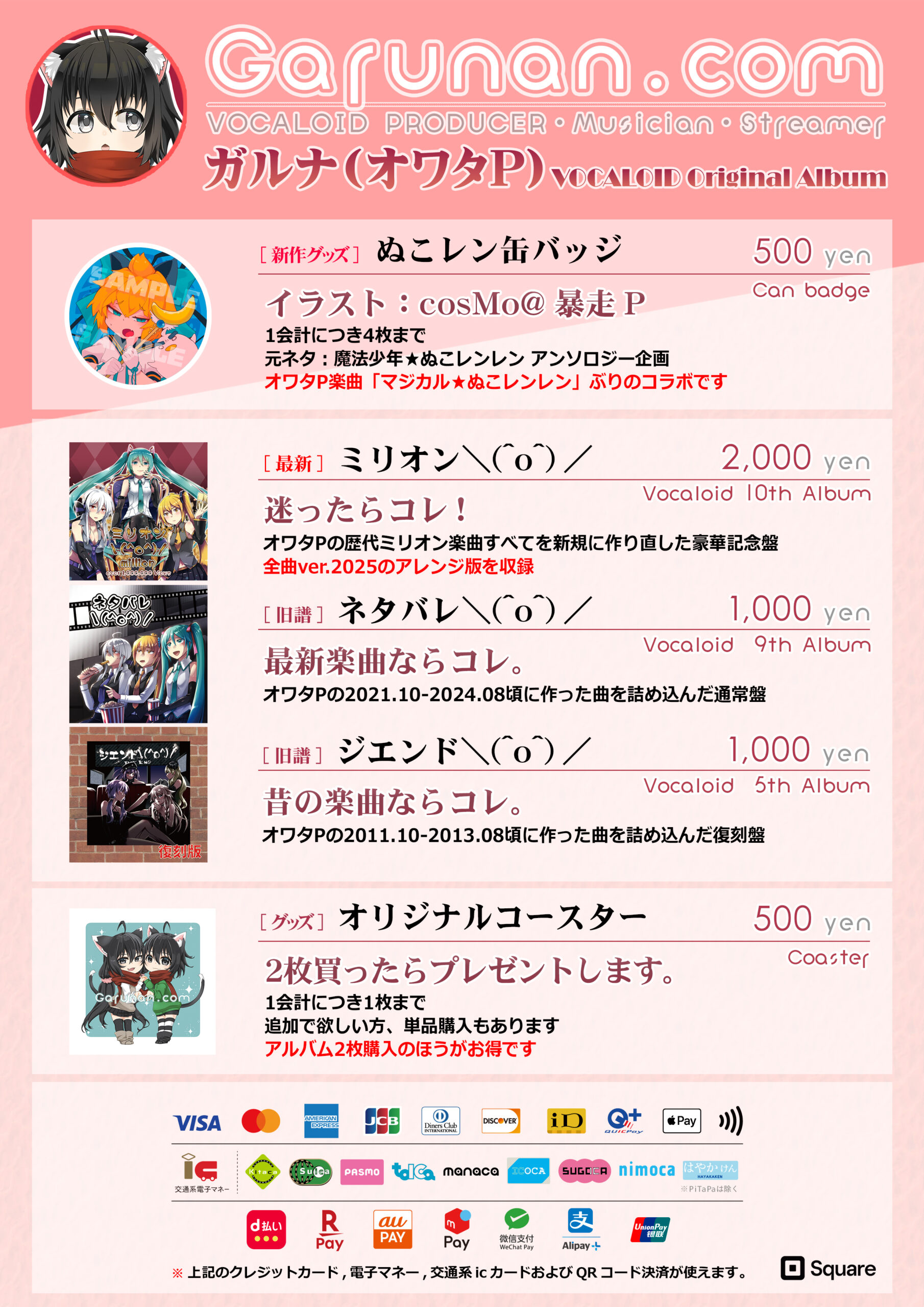 会場ではサークル主のガルナ(オワタP)およびcosMo@暴走Pが売り子として参加します。
